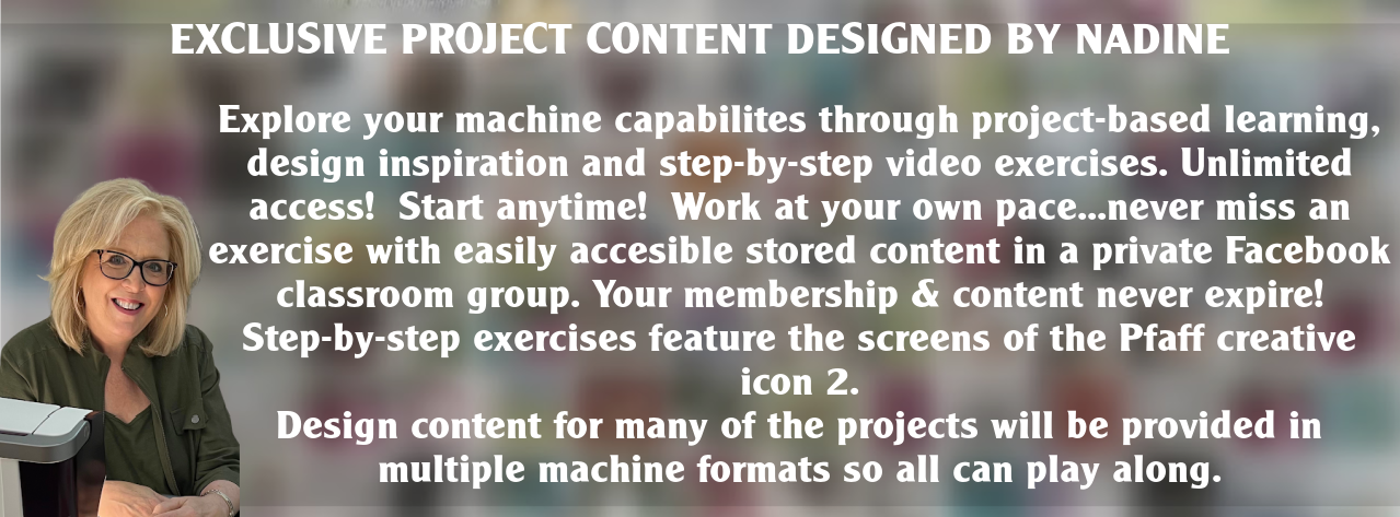 All machine owners are welcome! While I am working and demonstrating on the machine screens of the PFAFF creative icon 2, many have been successful in previous classrooms adapting the lessons to the original creative icon 1..along with other machine brands. New content, projects, videos and lessons will be added through June 2026. Your classroom and projects are timeless! You may access them for as long as you would like!