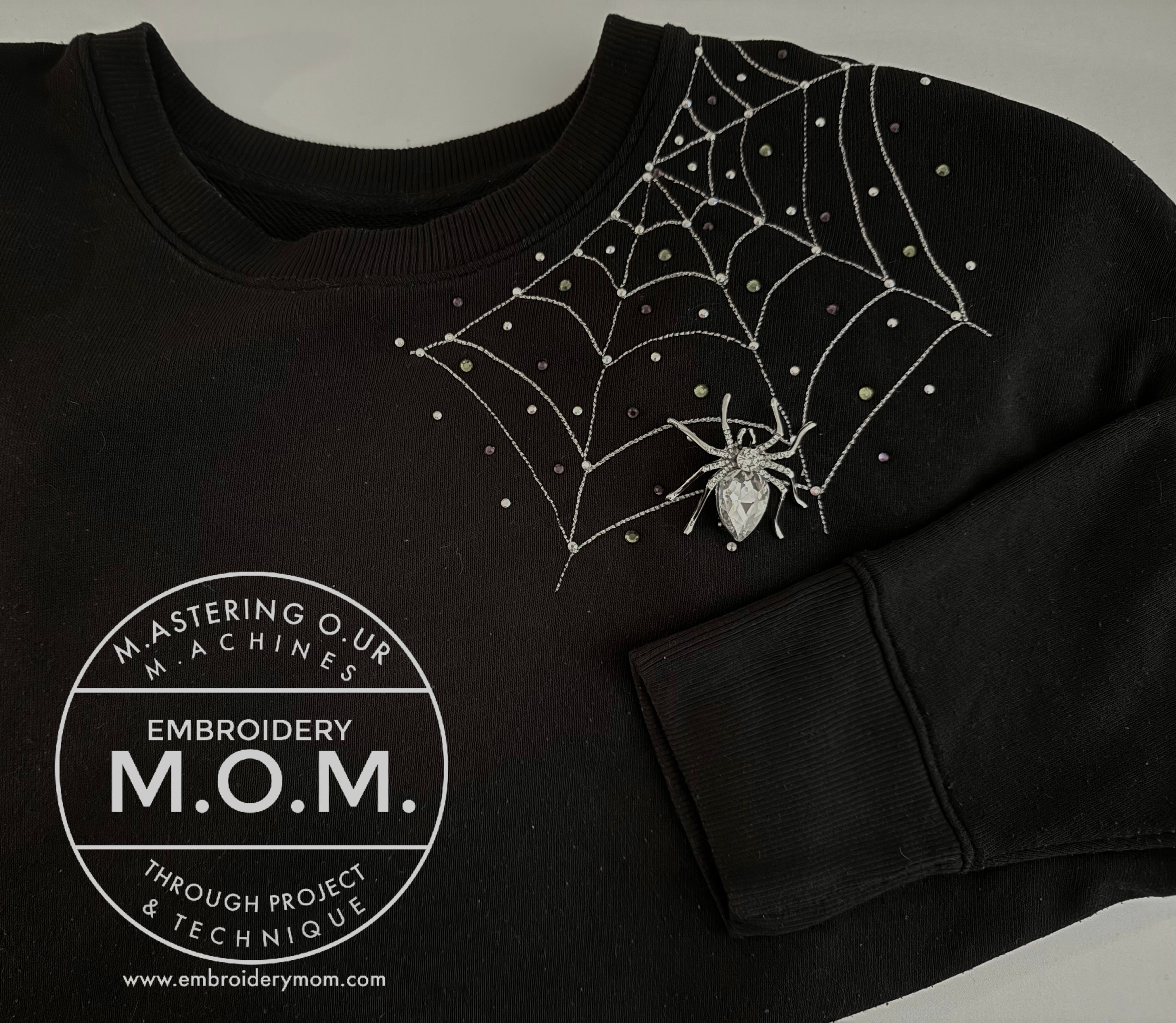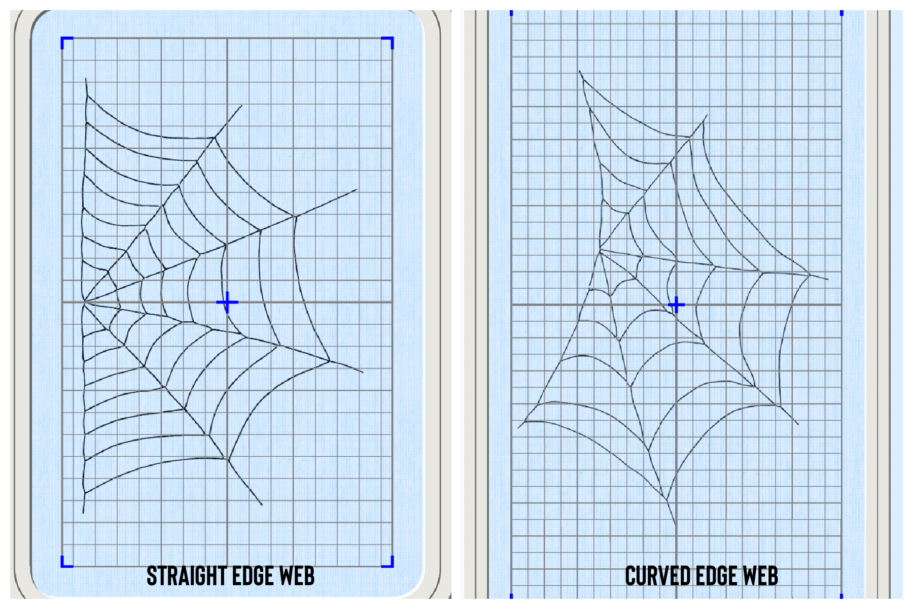 We are giving you two different web 'edges' to accommodate straight (V-neck) or curved (crewneck) necklines. Both designs are provided in multi-format so all machine owners can create a halloween project or wearable!